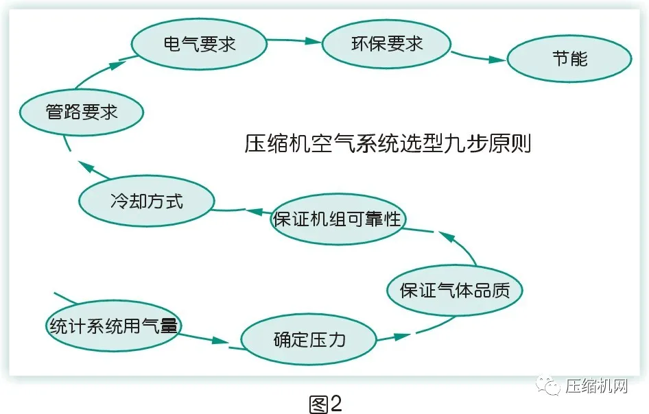 在客戶需要使用壓縮空氣的時(shí)候,對(duì)于壓縮空氣系統(tǒng)的選型有九個(gè)步驟,第九步是選擇系統(tǒng)節(jié)能。(見(jiàn)圖2)